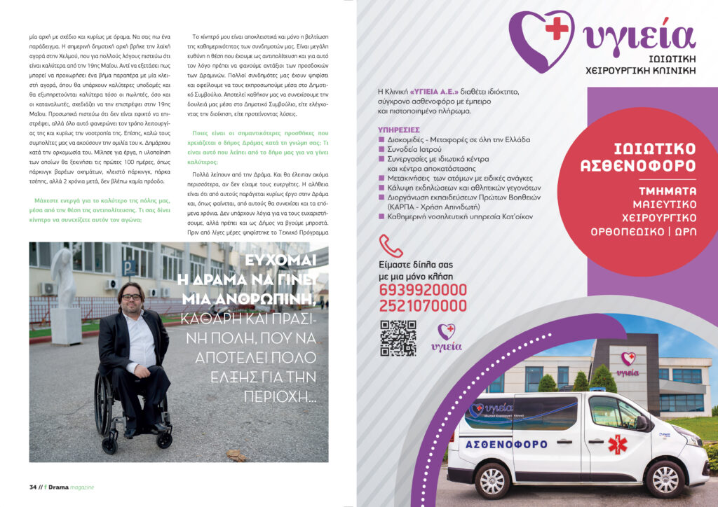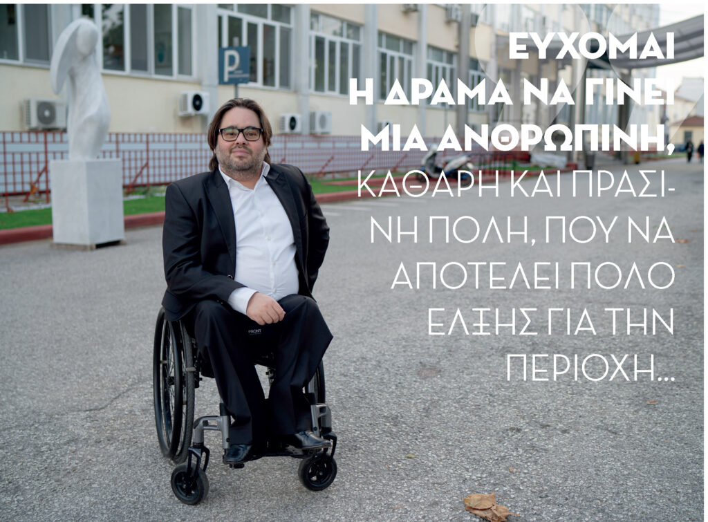 Η Δράμα, όπως έχω πει πολλές φορές, είναι από τις φιλικές ως προς τα άτομα με κινητική αναπηρία πόλεις. Την βοηθάει και το ανάγλυφό της, αλλά σχετικά με άλλες πόλεις, έχει καλές υποδομές εδώ και αρκετά χρόνια. Φυσικά, δε μπορεί να γίνει σύγκριση με μία σύγχρονη ευρωπαϊκή πόλη. Η καθημερινή μετακίνηση παραμένει δύσκολη, καθώς τα πεζοδρόμια είναι σε πολλές περιπτώσεις στενά και με πολλές κακοτεχνίες. Οι ράμπες σε πολλές περιπτώσεις θέλουν βελτίωση, για να μην είναι επικίνδυνες. Να πω σε αυτό το σημείο ότι οι υπηρεσίες του Δήμου επενέβησαν άμεσα όσες φορές τους έχω επισημάνει κάποιο πρόβλημα και οφείλω να τους ευχαριστήσω και δημόσια. Ένα μεγάλο πρόβλημα είναι η κατάληψη των πεζοδρομίων είτε από τραπεζοκαθίσματα είτε από αυτοκίνητα. Ελπίζω με τον σχετικό κανονισμό, που ψηφίσαμε πρόσφατα στο Δημοτικό Συμβούλιο, να βελτιωθεί η κατάσταση.