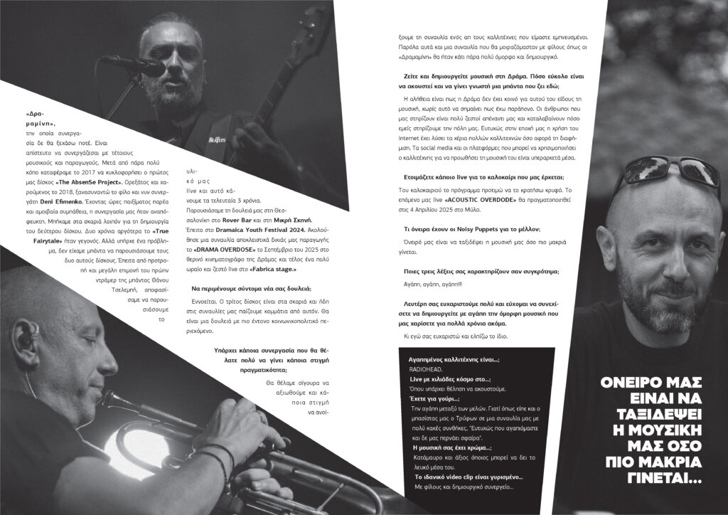 Του καλοκαιριού το πρόγραμμα προτιμώ να το κρατήσω κρυφό. Το επόμενο μας live «ACOUSTIC OVERDODE» θα πραγματοποιηθεί στις 4 Απριλίου 2025 στο Μύλο.
